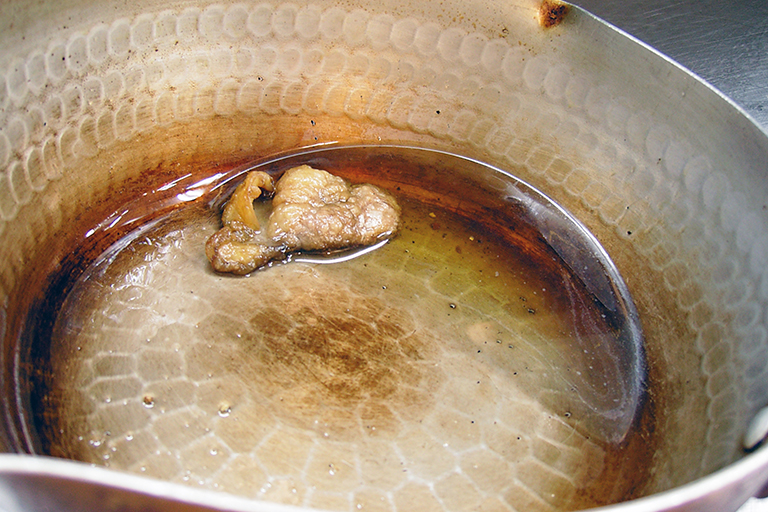 地鶏を焼くのに、同じ地鶏の脂を使う・・・