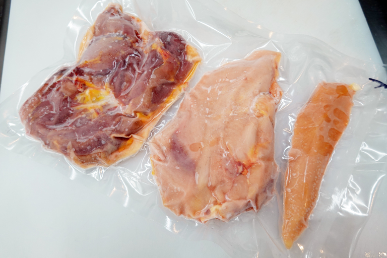 ドリップとは、肉等が凍る際に水分の膨張によって破壊された細胞膜から、解凍したときに流れ出す水分(旨み)のことですから、ドリップがより少ない方が、肉等の旨みに繋がるといえます。